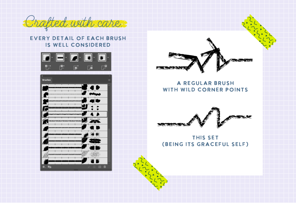 Looking to spice up your illustration and lettering with textures in Adobe Illustrator? This set includes 10 carefully designed high-quality texture brushes to add personality to your vector illustrations.